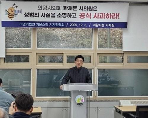 김 회장은 3일 의왕시청에서 열린 기자회견에서 "최근 언론보도를 통해 알려져 의왕시민과 많은 국민에게 충격을 안긴 한 의원의 성범죄 관련 재판 사실에 대해 당사자인 한 의원이 우선 사실을 소명하고 시민에게 직접 사과하라"고 요구했다. 한 의원은 현재 강제추행 혐의로 기소돼 재판(사건번호: 2025고단2050)을 받고 있다.