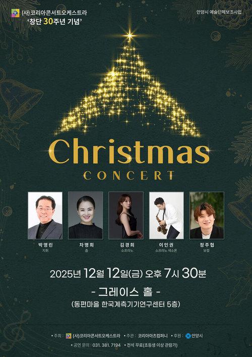 박영린 지휘, 소프라노 김경희·색소폰 이인권·춤 차명희 등 다채로운 무대 선사 사단법인 코리아콘서트오케스트라(단장 박영린)가 연말을 맞아 ‘2025 Christmas Concert’를 개최한다.
