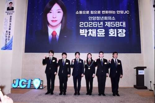 이어 박채윤 신임 회장이 2026년 회장으로 공식 취임했다. 박채윤 회장은 안양청년회의소 최초의 여성 회장이다. 그는 취임사에서 “소통의 힘으로 변화하는 안양JC”를 슬로건으로 제시하며 “최초 여성 회장이라는 수식어보다, 2026년 회장으로서 안양청년회의소를 잘 이끌어가는 데 최선을 다하겠다. 회원들과 소통해 변화와 성장을 만들어가겠다”고 말했다.