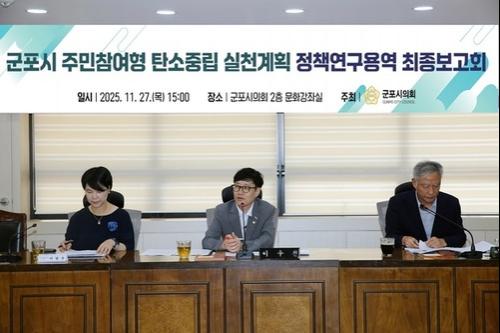 The Gunpo City Carbon Neutrality Research Group, led by Gunpo City Council Member Lee Woo-cheon (Democratic Party of Korea, Gunpo District), held the "Final Report Meeting on the Gunpo City Citizen-Participatory Carbon Neutrality Action Plan Policy Research Project" on November 27th in the Cultural Lecture Room on the second floor of the Gunpo City Council.