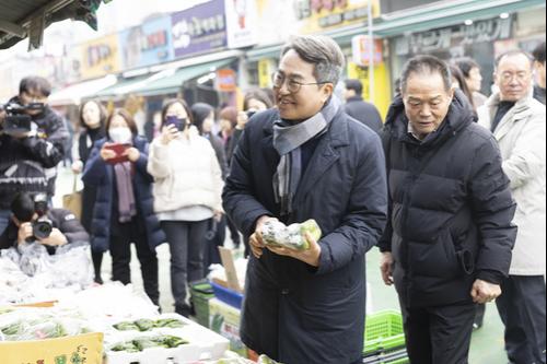 아래는 위 기사를 ‘Google 번역’으로 번역한 영문 기사의 ‘전문’이다. ‘Google 번역’은 이해도를 높이기 위해 노력하고 있다. 영문 번역에 오류가 있을 수 있음을 전제로 한다. <*The following is [the full text] of the English article translated by ‘Google Translate’ and amended. ‘Google Translate’ is working hard to improve understanding. It is assumed that there may be errors in the English translation.> Governor Kim Dong-yeon Visits Uiwang Dokkaebi Market to Encourage Merchants Gyeonggi Province Governor Kim Dong-yeon visited Uiwang Dokkaebi Market, where recovery efforts are underway after heavy snowfall, to encourage merchants. This was his third visit to the market since the market was hit by heavy snow in November 2024. On the 15th, Governor Kim Dong-yeon visited Uiwang City on his 27th livelihood and economy field tour (Daldal Bus - the route varies depending on the destination). He reviewed the progress of the Dokkaebi Market recovery work and discussed market price trends ahead of the Lunar New Year holiday and spoke with merchants. Governor Kim met with Park Yong-sul, President of the Dokkaebi Market Merchants Association, to express his best wishes and reassure the merchants, saying, "I hope you do well in the Lunar New Year holiday and that we will move forward quickly once the market is finished." Uiwang Dokkaebi Market suffered the devastating impact of heavy snowfall in November 2024, when the market arcade (rain shelter) collapsed, forcing many shops to close. Governor Kim visited Dokkaebi Market on the day the damage occurred, offering comfort and encouragement to the merchants and promising prompt assistance. He also visited the market on January 26th of last year to console the merchants and check prices. Following this, the province provided a special adjustment subsidy of 3 billion won for the installation of the arcade in August of last year, and construction has been underway since November of last year. The target completion date for the arcade is April. Meanwhile, Uiwang Dokkaebi Market, which opened in 1980, covers an area of 8,368 square meters and houses 128 stores. It is the only traditional market in Uiwang City. <저작권자 ⓒ 경기브레이크뉴스&주간현대신문 무단전재 및 재배포 금지>
