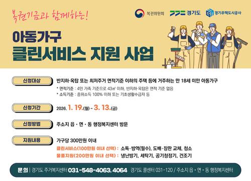 의왕시가 1월 19일부터 3월 13일까지 복권기금과 함께하는 경기도 ‘아동가구 클린서비스 지원사업’의 신청을 받는다.