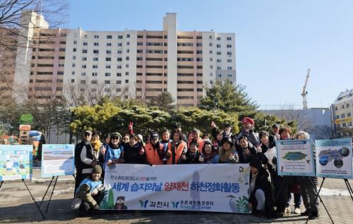 Picking Up Trash, Protecting Wetlands Gwacheon Citizens Walk the Yangjae Stream on World Wetlands Day